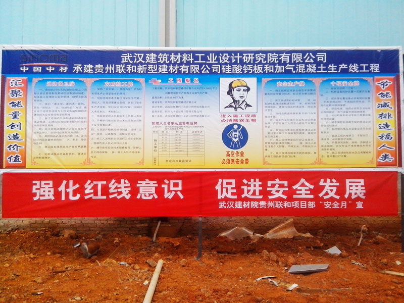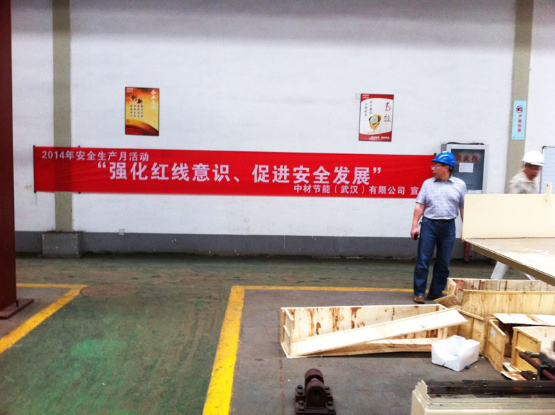 6月上旬, 在公司辦公樓、節(jié)能(武漢)車間、項(xiàng)目部現(xiàn)場懸掛安全生產(chǎn)的宣傳橫幅。