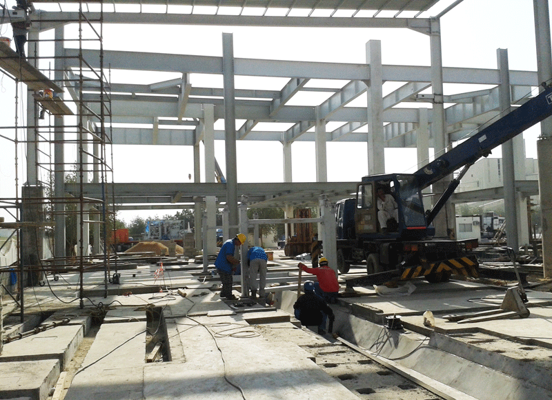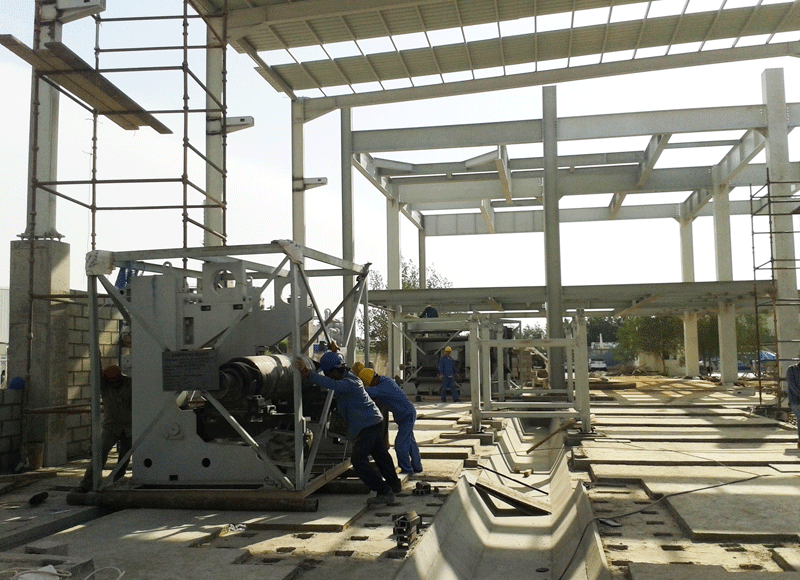 姚元君一行首先深入項(xiàng)目施工現(xiàn)場(chǎng),對(duì)各個(gè)車間建設(shè)情況進(jìn)行了解。聽取現(xiàn)場(chǎng)經(jīng)理李項(xiàng)興對(duì)項(xiàng)目土建施工及安裝進(jìn)度的匯報(bào)。姚元君仔細(xì)詢問項(xiàng)目設(shè)計(jì)圖紙及設(shè)備到場(chǎng)情況,以及項(xiàng)目部確保工期順利實(shí)現(xiàn)的具體措施。由我院承建的沙特ASK集團(tuán)年產(chǎn)500萬平方米纖維水泥板生產(chǎn)線項(xiàng)目目前進(jìn)展順利,項(xiàng)目設(shè)計(jì)全部完成,土建及設(shè)備安裝按圖施工中, 設(shè)備采購工作完成, 合同范圍的設(shè)備已發(fā)運(yùn)至現(xiàn)場(chǎng)。我方負(fù)責(zé)的安裝工作有序進(jìn)行,三工位堆垛機(jī)、四工位脫模機(jī)、兩臺(tái)地面吊機(jī)、制板機(jī)開始安裝;烘干機(jī)及球磨機(jī)做安裝前放線準(zhǔn)備。