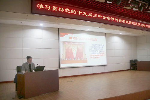 為深入學(xué)習(xí)貫徹黨的十九屆五中全會精神,按照省政府國資委黨委統(tǒng)一部署,12月15日上午,公司召開學(xué)習(xí)貫徹黨的十九屆五中全會精神省委宣講團報告會。省委宣講團成員、武漢大學(xué)經(jīng)濟與管理學(xué)院范如國教授來公司作宣講報告。會議由黨群工作部部長鄭雯主持,公司領(lǐng)導(dǎo)、黨員干部共計70余人參加宣講報告會。